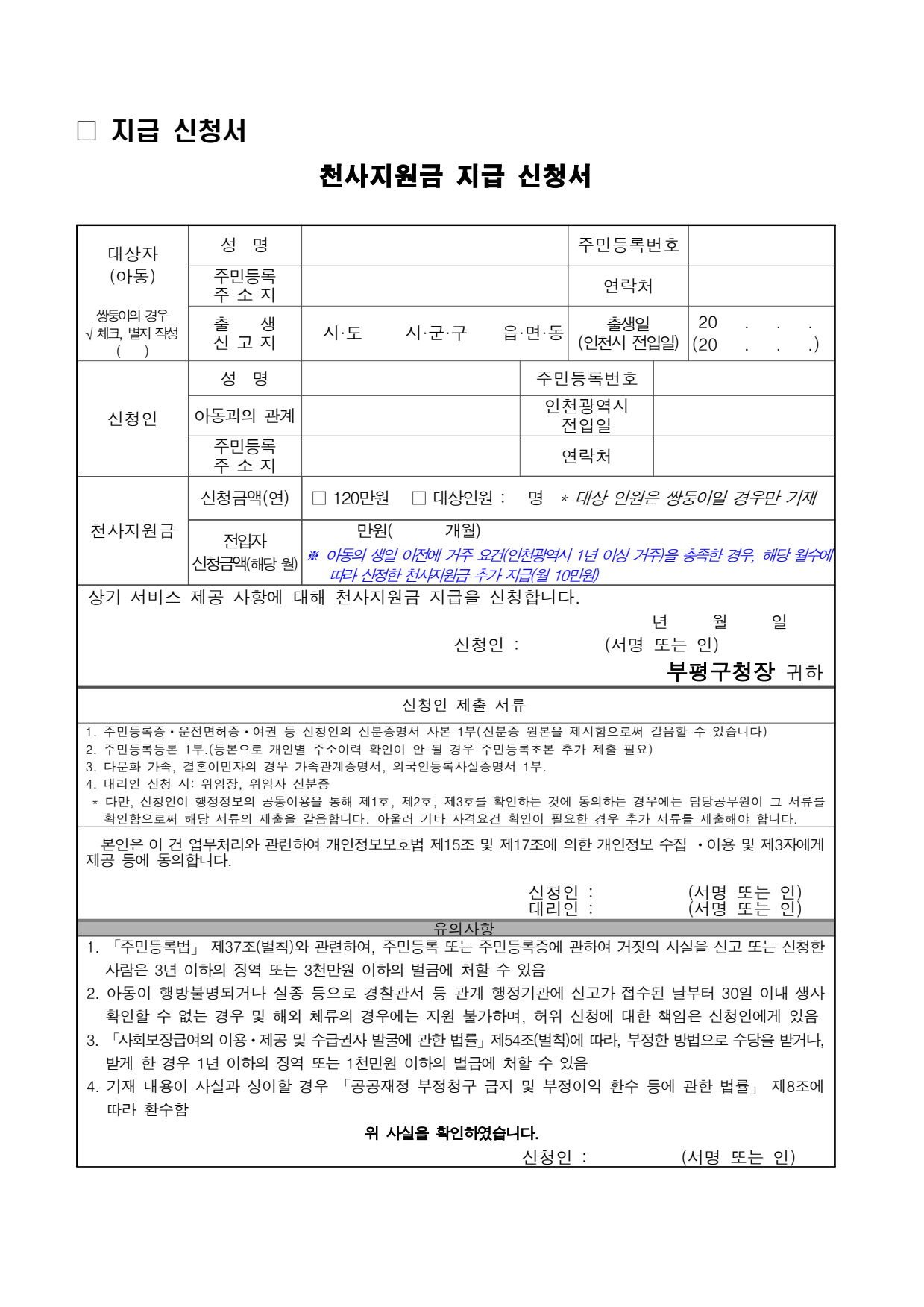 인천 천사지원금 신청