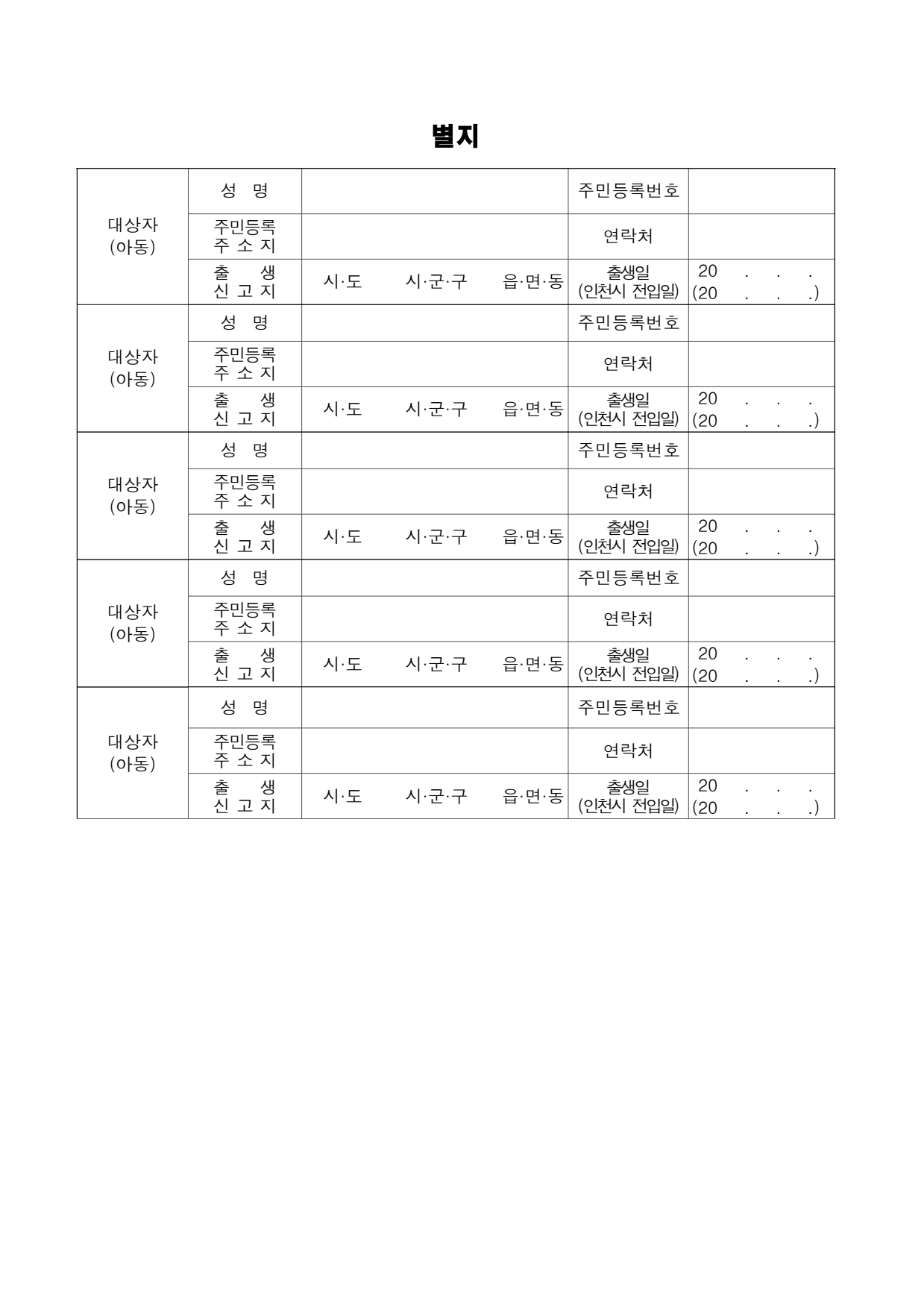 1. 부 또는 모와 주민등록을 같이 두고 인천시에 1년 이상 계속하여 거주하는 아동